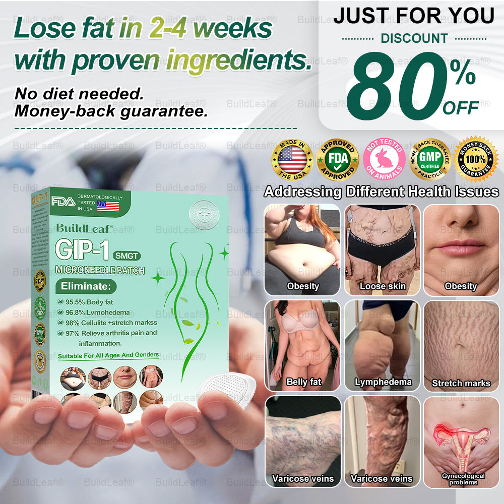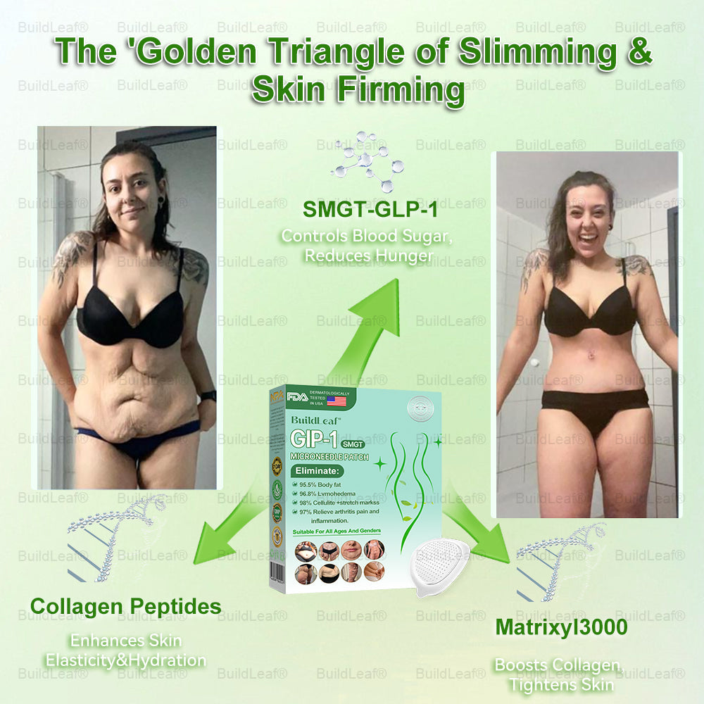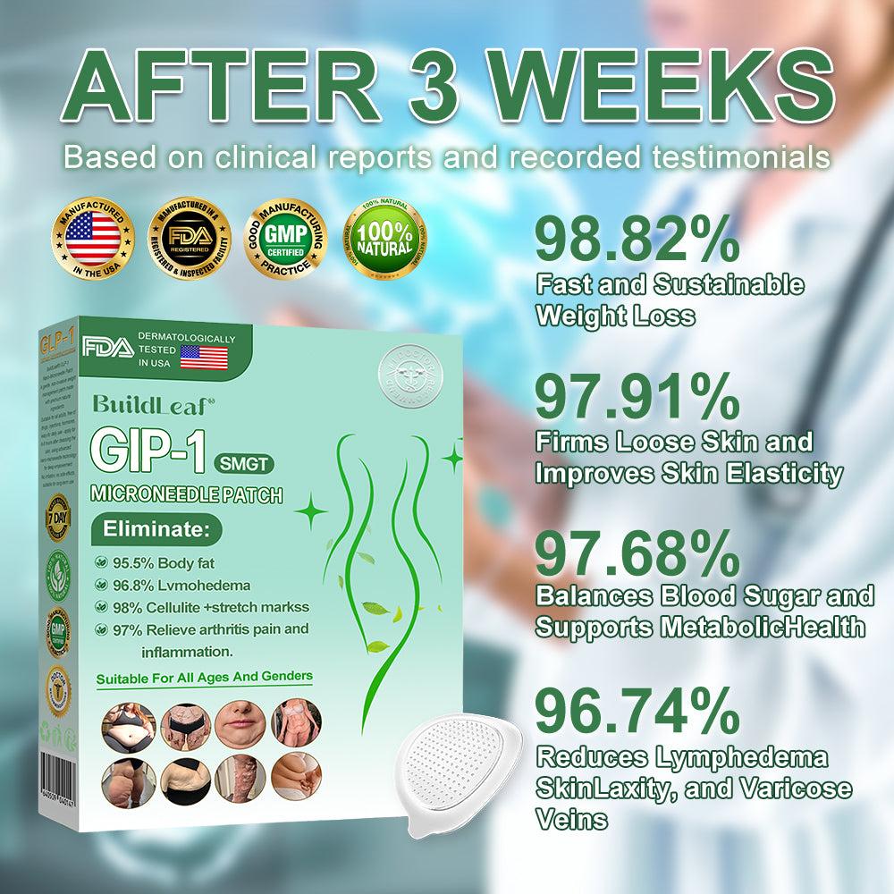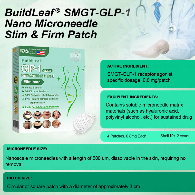 The BuildLeaf® SMGT-GLP-1 Nano Microneedle Slim & Firm Patch was developed by a top team of endocrinology experts after years of research into weight loss and metabolic health. Its advanced formula promotes fat burning, stabilizes blood sugar, and boosts metabolism. It also contains Matrixyl 3000 to help lift and firm the skin, improving both body shape and skin tone.